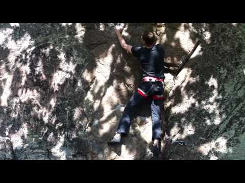 Försökte genom hela helgen att tänka på hur jag tillämpar det jag lärt mig inomhus på bergen, "på riktigt" så att säga. Det är ju inte samma sak, berget är hårt, greppen är hårdare och allt är mer omständigt. Getingar som surrar omkring, mossa man halkar på, leder som ingen annan än naturen själv har byggt, sol i ögonen, pitonger, ingen toalett, trixiga säkringsplatser och vind som susar i öronen. Men det är värt det, och det märks verkligen att man per automatik gör det man gjort hundra gånger på inomhusväggen utan att tänka efter. En klar skillnad är att man ibland måste vara oändligt kreativ med vilka grepp man ska ta och positioner man ska hålla för att komma vidare, just eftersom det inte är någon som byggt leden; den bara är. Väldigt nyttigt.