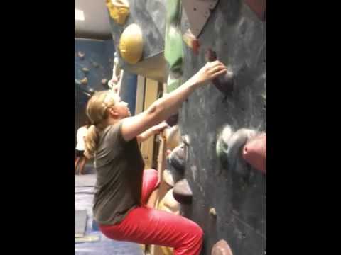 I måndags var det just stora rörelser, där man måste flytta båda händerna samtidigt, som jag övade på tillsammans med Robin. Vi började lugnt och testade på mindre rörelser. Till att börja med blev det väldigt ryckigt och jag drämde in i greppen så att väggen skallrade. Målet är tvärt om att man ska ha så mycket tid på sig som möjligt i förflyttningen och fatta greppen mjukt. Det ska bara väsa till, som vid ett perfekt dyk från tian. En bra övning var att bara flytta runt händerna mellan grepp i olika höjd och svårighetsgrad: